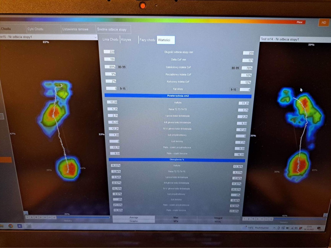 • badanie komputerowe stóp i chodu na macie tensometrycznej